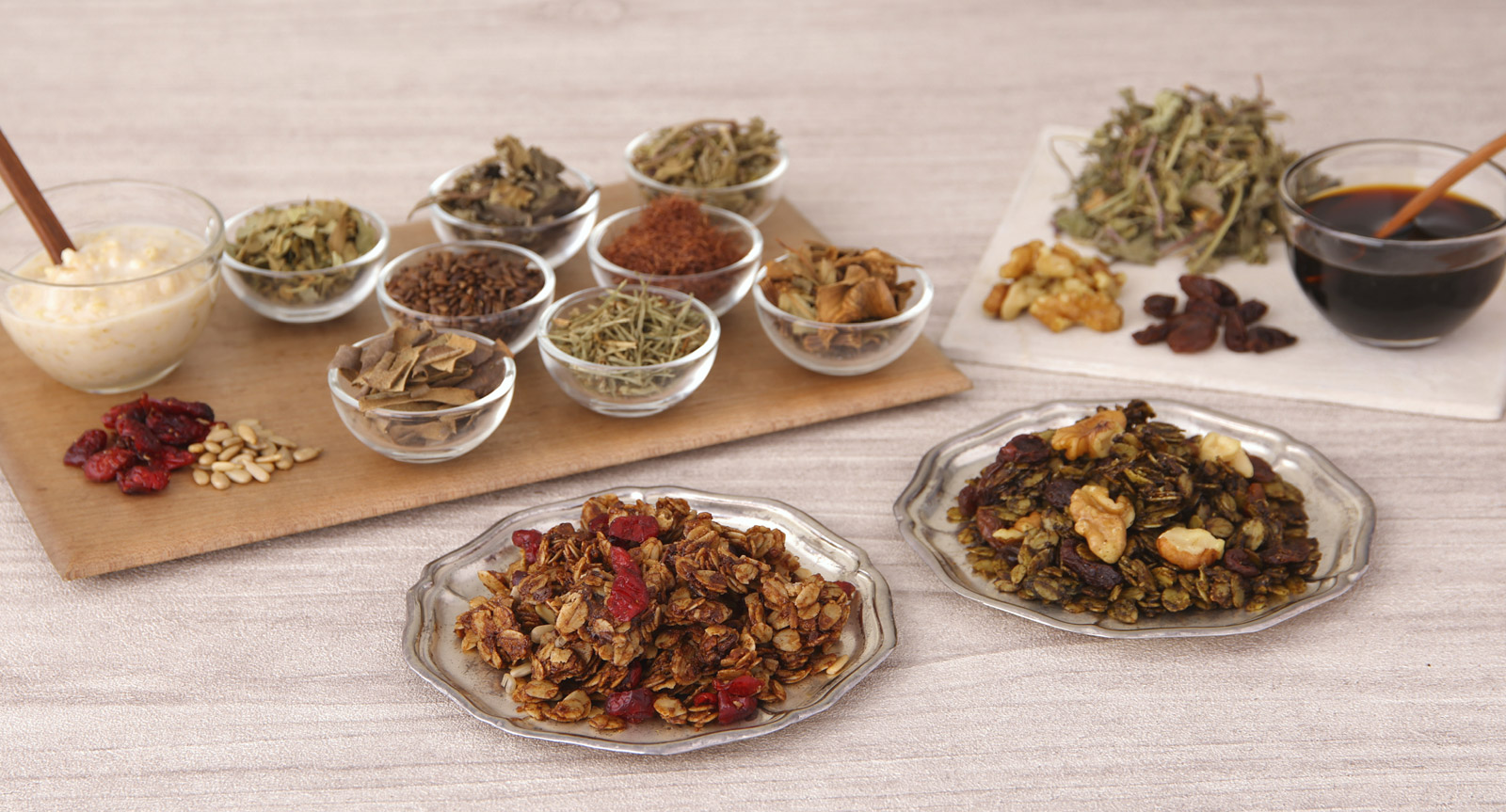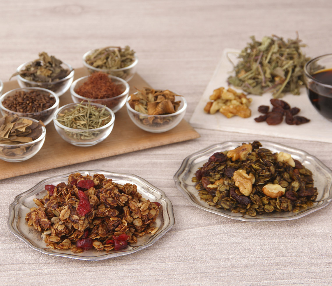 亀戸で作られる和菓子の老舗、船橋屋の黒蜜を使い、阿蘇の発酵よもぎの個性に寄り添いながら奥深さを演出しました。味わいのアクセントにレーズンと食感もたのしいクルミもブレンド。